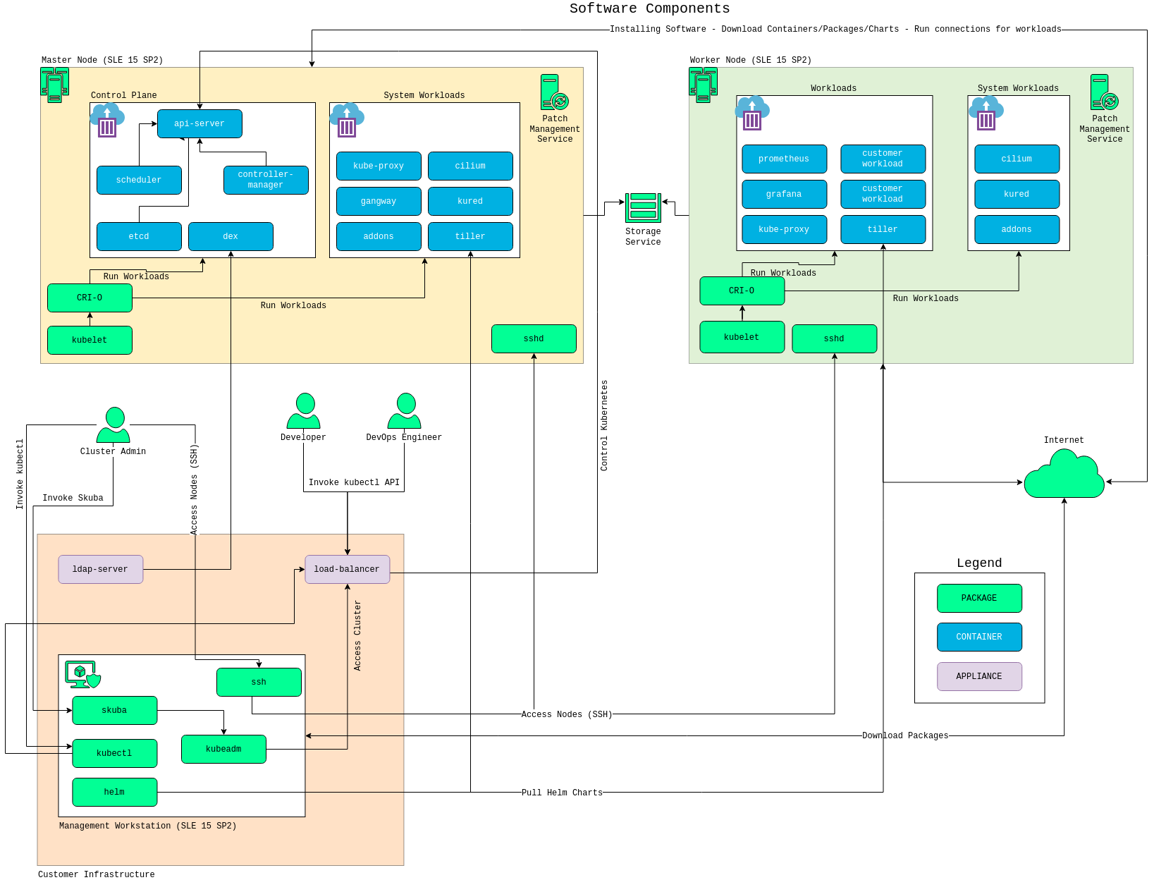 In addition, SUSE CaaS Platform simplifies the platform operator’s experience, with everything you need to get up and running quickly, and to manage the environment effectively in production. It provides: