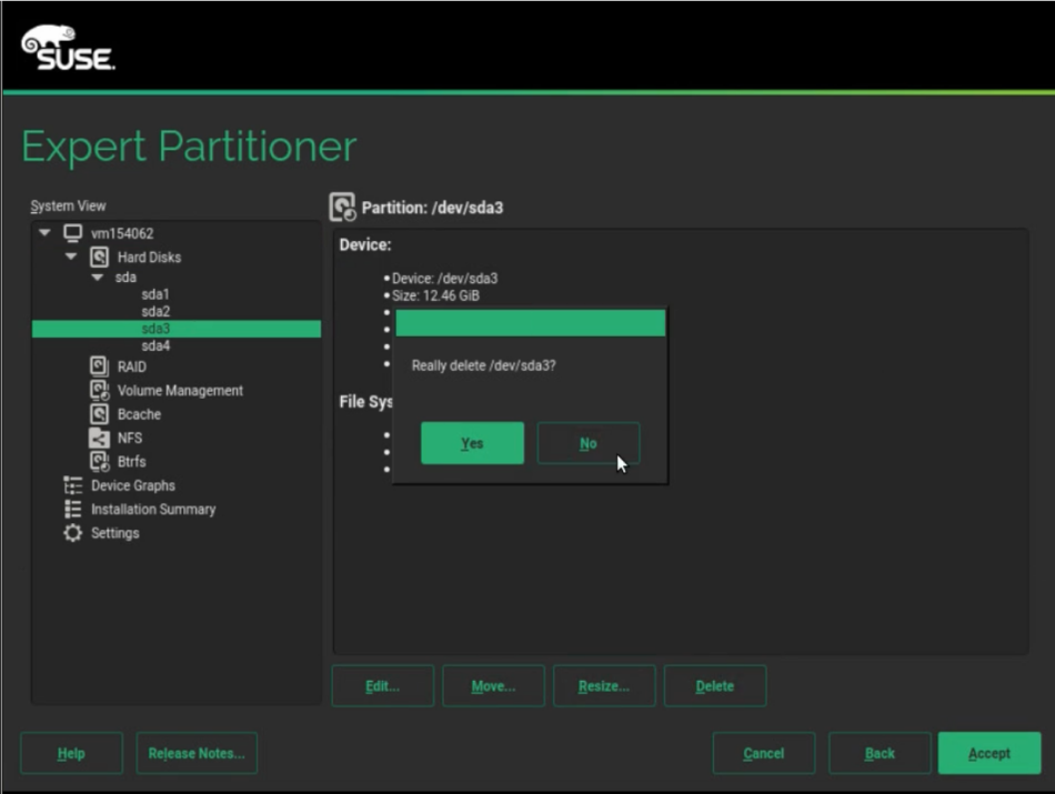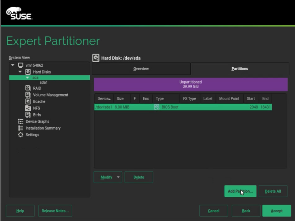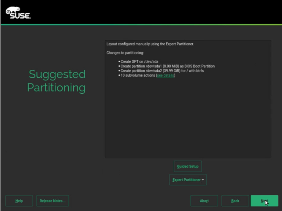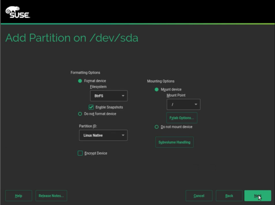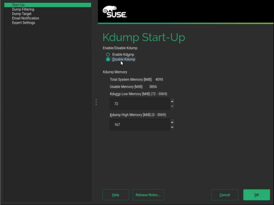 When using a pre-existing SUSE Linux Enterprise installation, swap will be enabled. You must disable swap