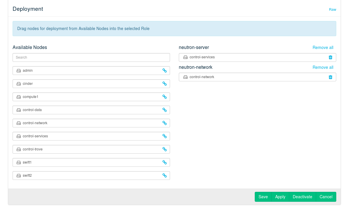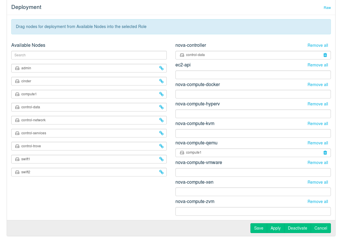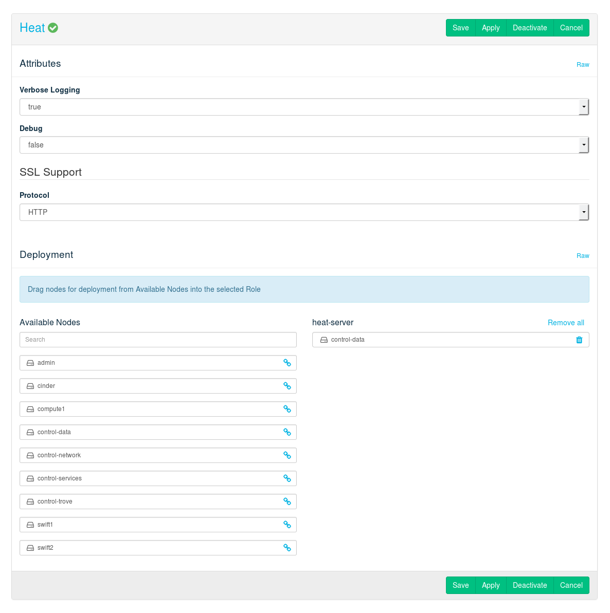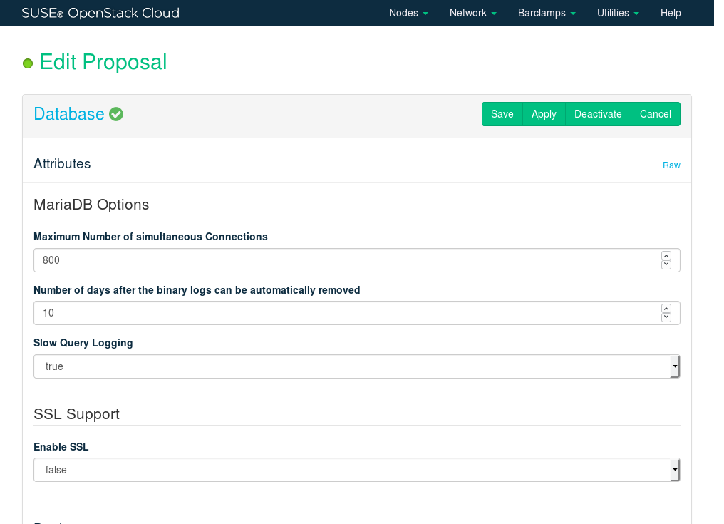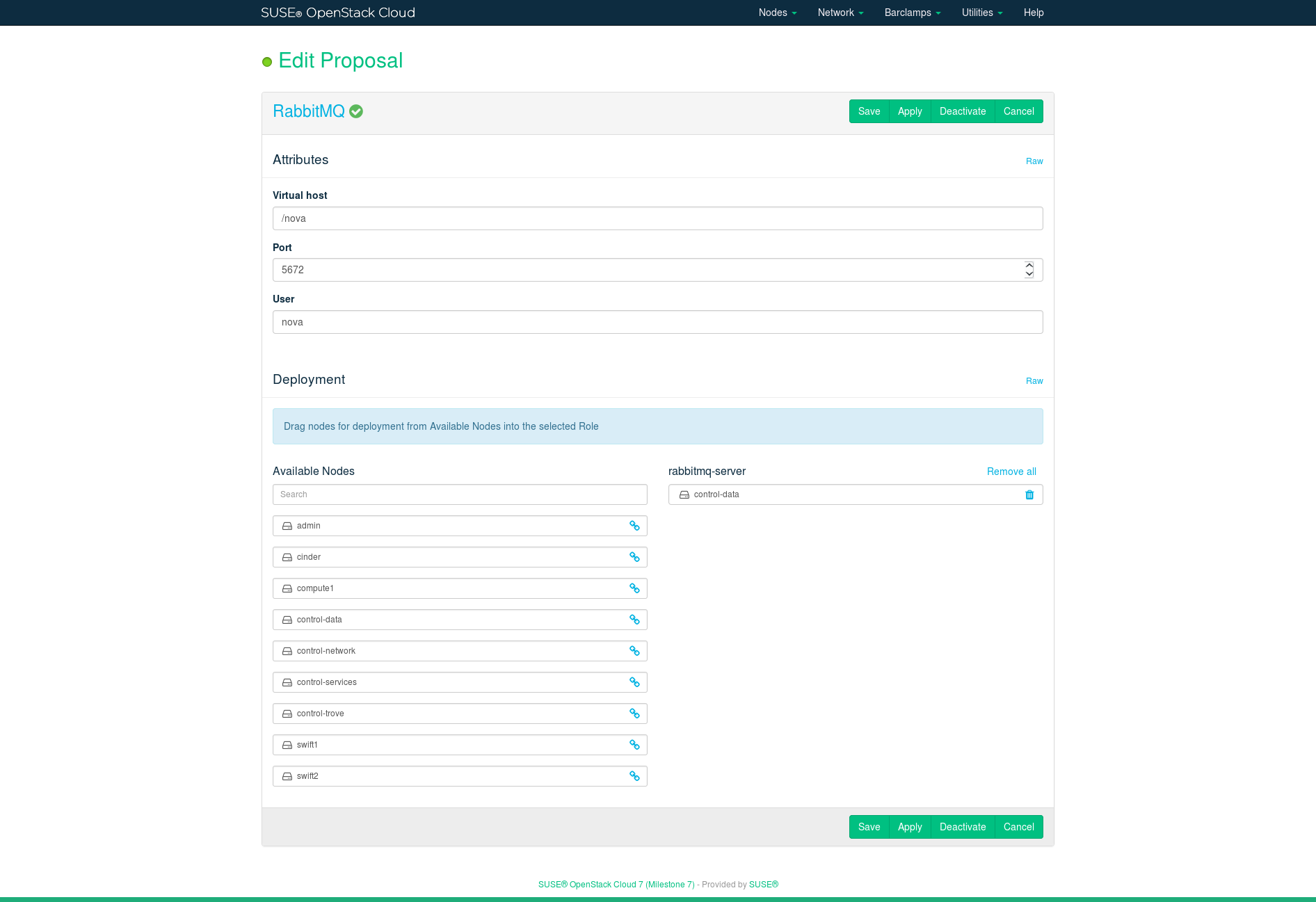 The OpenStack components need to be deployed in the following order. For general instructions on how to edit and deploy barclamps, refer to Section 10.3, “Deploying Barclamp Proposals”. Any optional components that you elect to use must be installed in their correct order.
