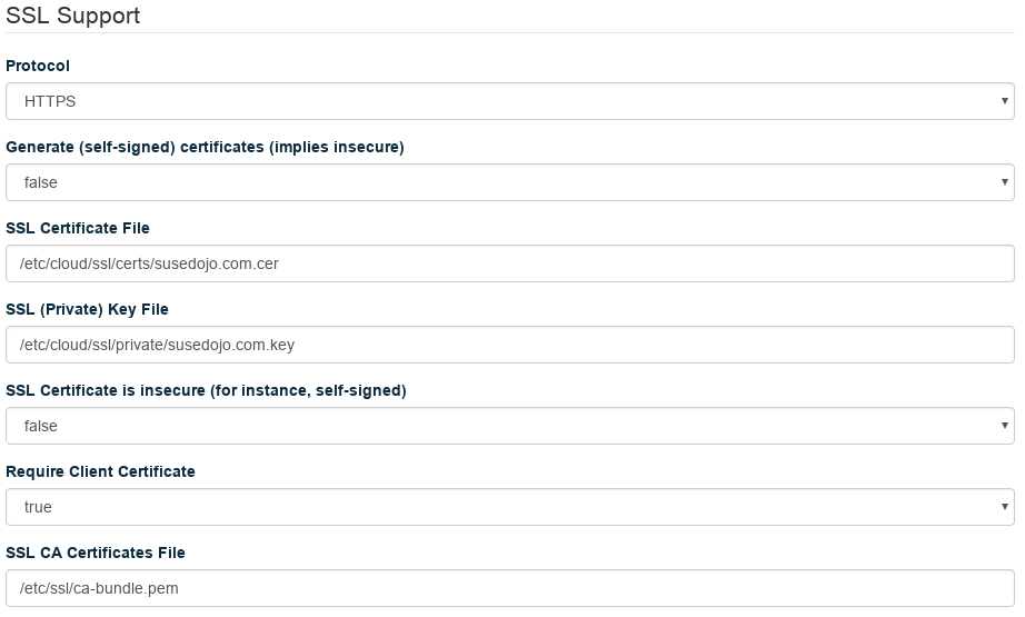 The purpose of this document is to help set up SSL Support for several services in SUSE OpenStack Cloud. The scope of this document covers all public endpoints in your OpenStack cluster. In most cases you want to have a Secure CA or External CA where your certificates are signed. You will sign with either a public CA or self signed CA, and include x509 extensions for Subject Alt Names since there might be a highly available control plane with alternate names.