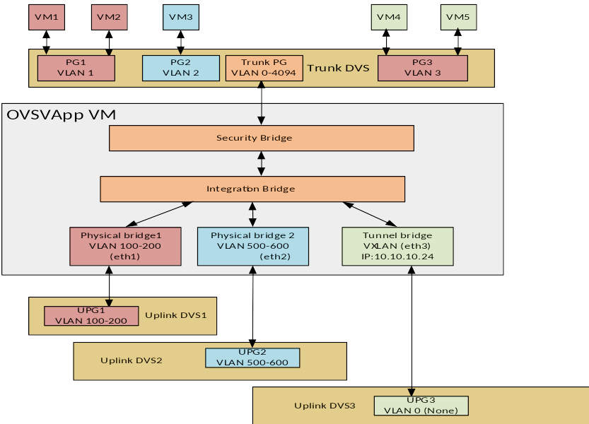 ESXi is a hypervisor developed by VMware for deploying and serving virtual computers. OVSvApp is a service VM that allows for leveraging advanced networking capabilities that OpenStack Neutron provides. As a result, OpenStack features can be added quickly with minimum effort where ESXi is used. OVSvApp allows for hosting VMs on ESXi hypervisors together with the flexibility of creating port groups dynamically on Distributed Virtual Switches (DVS). Network traffic can then be steered through the OVSvApp VM which provides VLAN and VXLAN underlying infrastructure for VM communication and security features based on OpenStack. More information is available at the OpenStack wiki.