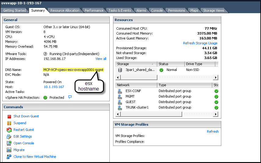 where HOST_NAME and TARGET_HOSTNAME is mentioned at the DNS name field at the vSphere client. (Refer to Section 6.3.1, “Prerequisites”).
