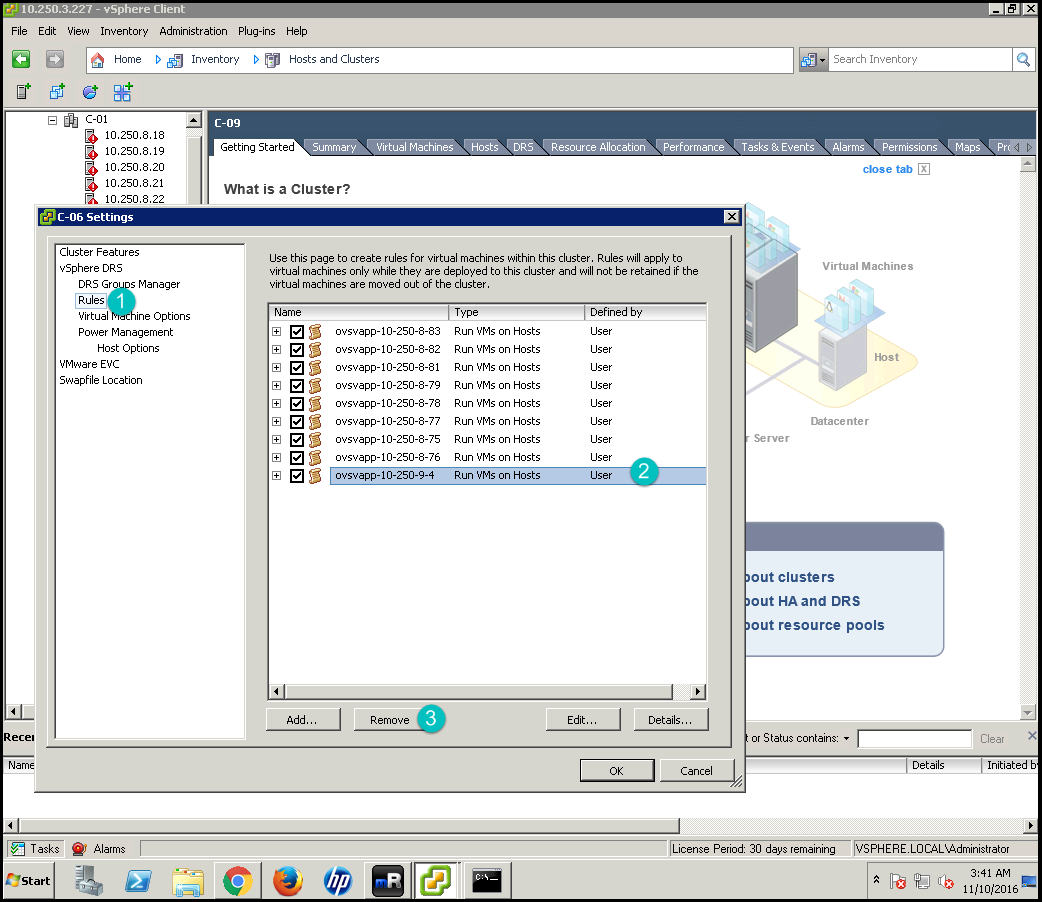 6.4.7 Remove Distributed Resource Scheduler (DRS) Rules #