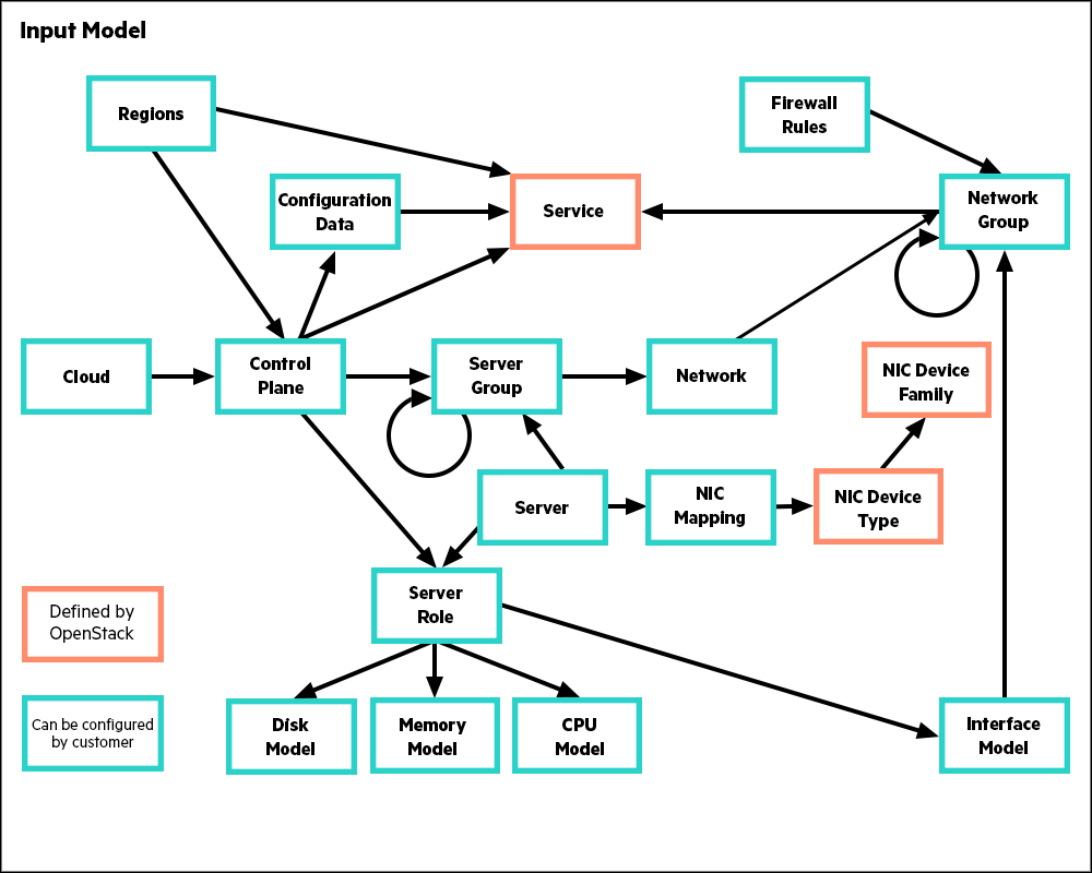 SUSE OpenStack Cloud ships with a set of example input models that can be used as starting points for defining a custom cloud. An input model allows you, the cloud administrator, to describe the cloud configuration in terms of:
