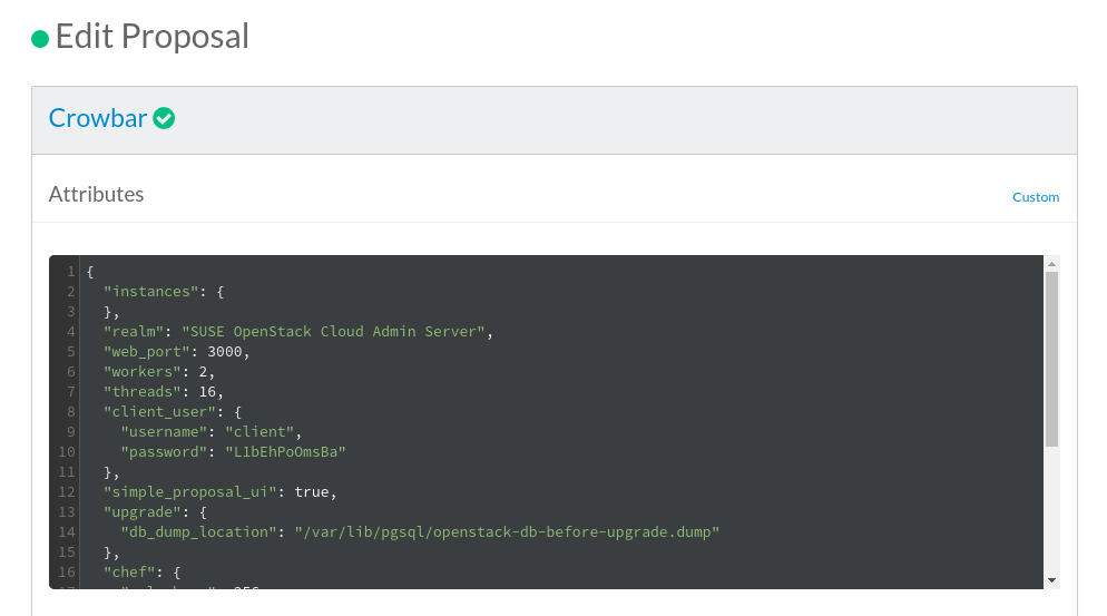 Crowbar is a self-referential barclamp used for enabling other barclamps. By creating a Crowbar proposal, you can modify the default number of threads and workers. This way, you can scale the admin server according to the actual usage or the number of available cores of the admin node.