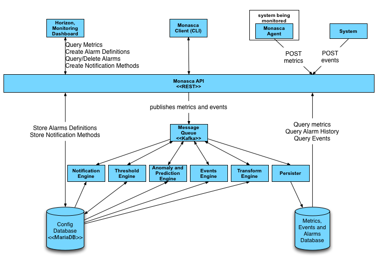 The SUSE OpenStack Cloud Monitoring service leverages OpenStack monasca, which is a multi-tenant, scalable, fault tolerant monitoring service.