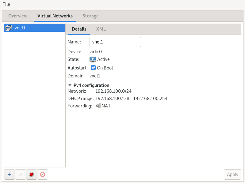 • virtnetworkd - The virtual network management daemon which provides libvirt's virtual network management APIs. For example, virtnetworkd can be used to create a NAT virtual network on the host for use by virtual machines.