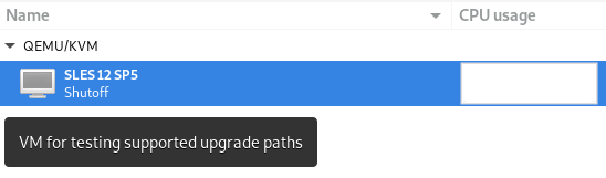 sles15 --memory 1024 --disk vol=VM/sled12.qcow2,cache=none --cdrom \