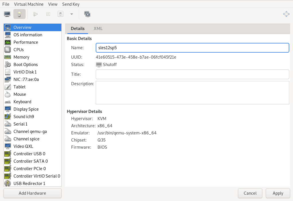 Let us create a SUSE Linux Enterprise Server VM Guest with the virt-install command. The VM pool is specified with the --disk option, cache=none is recommended if you do not want to use the --unsafe option while doing the migration.