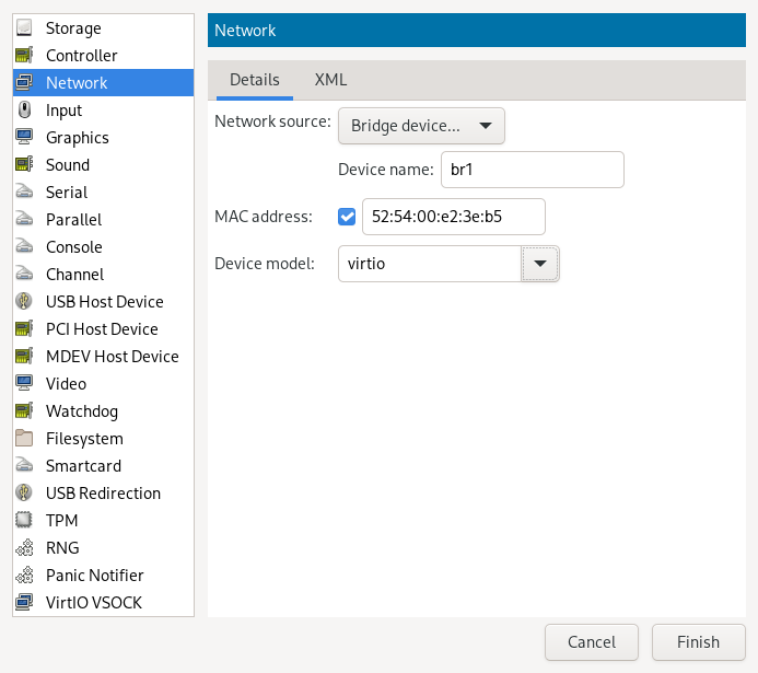 2.1.1.1.1 Adding a network bridge