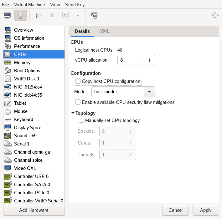 • libvirtd.service - The main systemd unit file for launching libvirtd. We recommend configuring libvirtd.service to start on boot if VMs are also configured to start on host boot.