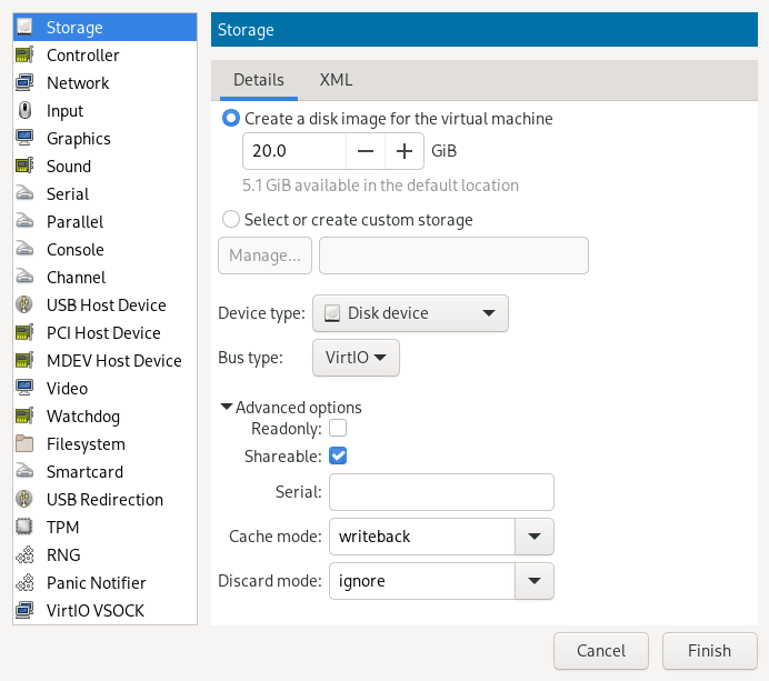 The pool has been defined—now we need a volume that contains the disk image: