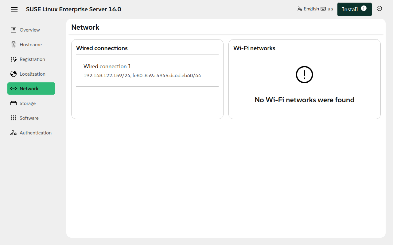 Tip: Installer language and keyboardClick the arrow menu in the top-right corner and select to change the language and keyboard layout used by the installer. The language can only be changed on local installations. If you are using a Web browser for a remote installation, configure the preferred content language in the browser settings and reload the installer.