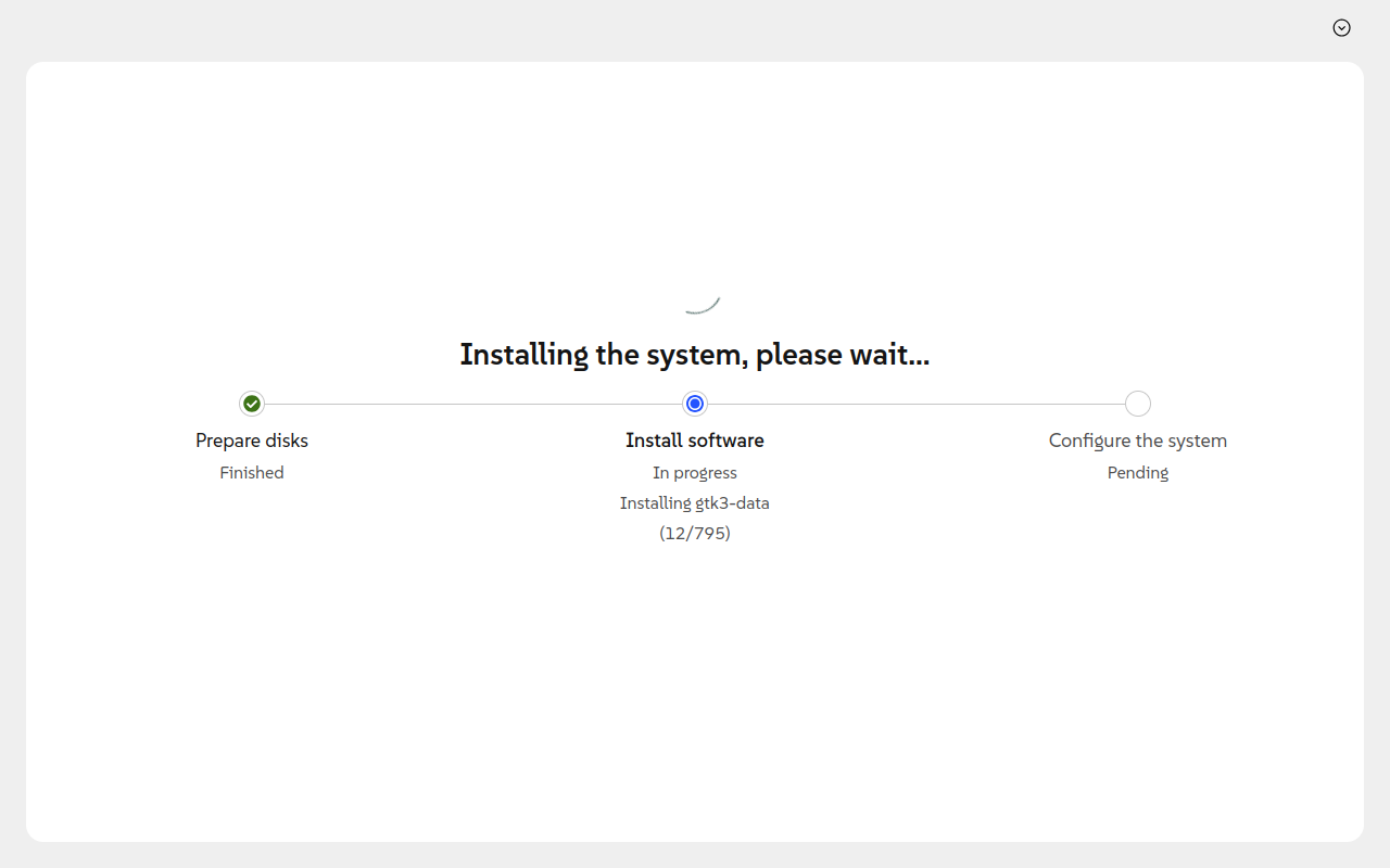 Tip: Installation logsYou can use the arrow menu in the top-right corner of the window to view the logs and system messages.