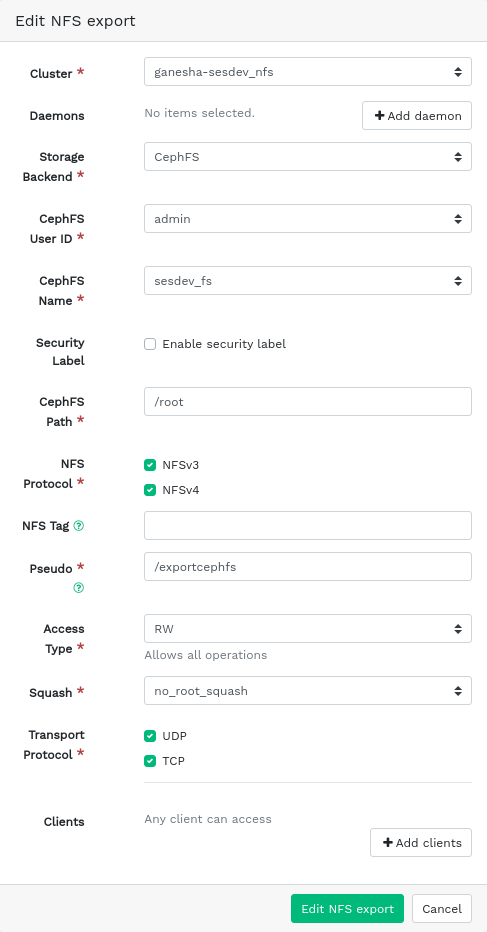 - 7.4 Editing an NFS export