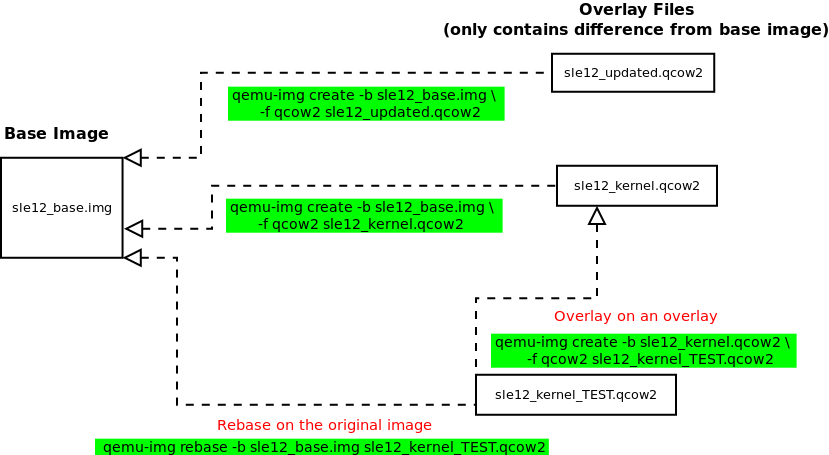 To share the root file system between several sandboxes, create qcow2 images with a common disk image as backing chain as described in Section 5.2, “Overlay Disk Images”.