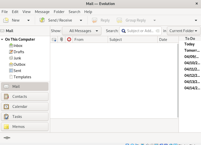 To start Evolution, , open the Activities Overview by pressing Meta and search for evol.