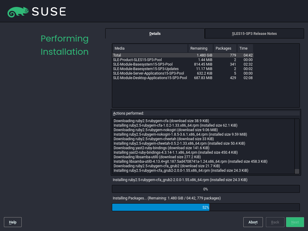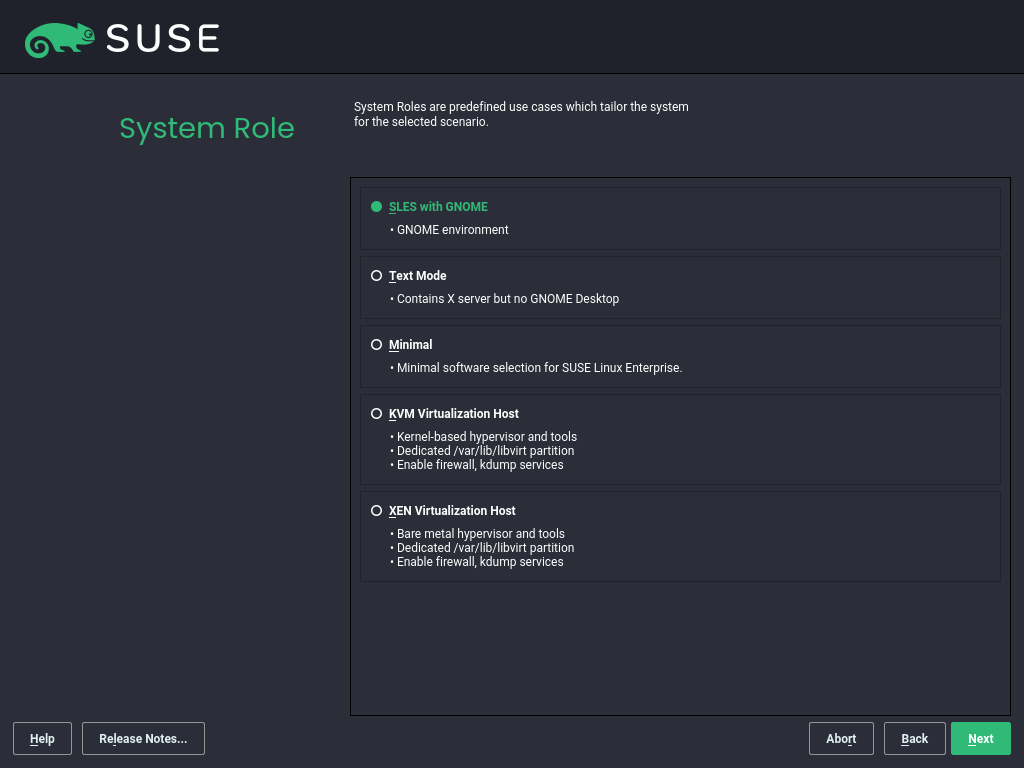 Starting with SUSE Linux Enterprise Server 15, the installation medium only consists of the Unified Installer, a minimal system for installing, updating, and registering all SUSE Linux Enterprise base products. During the installation you can add functionality by selecting modules and extensions to be installed on top of the Unified Installer.