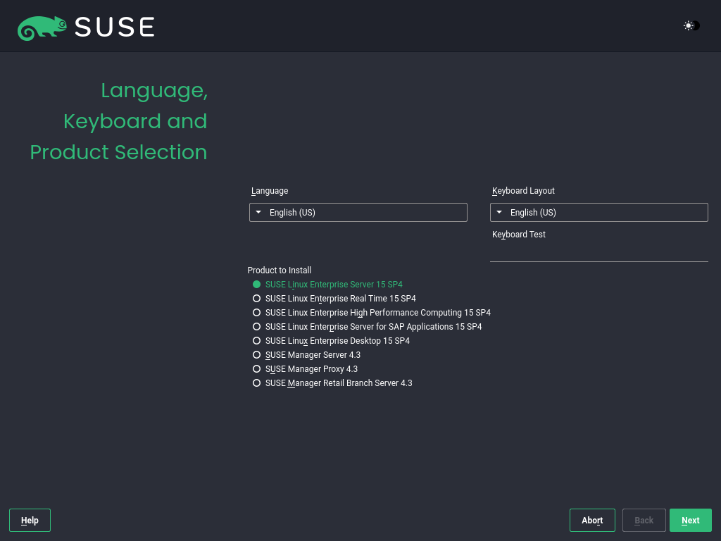This Quick Start guides you step-by-step through the installation of SUSE® Linux Enterprise Server 15 SP4.