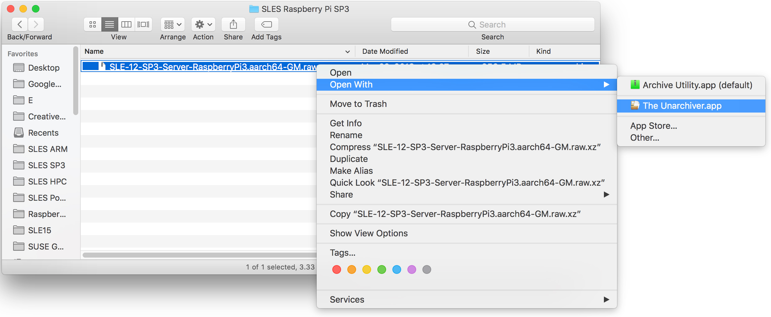 SUSE Linux Enterprise Server for Arm for Raspberry Pi is distributed as an XZ-compressed image file for microSD cards. This section will guide you through the process of preparing the card for the first boot. If you already have a microSD card containing the image, you can skip this section and go straight to Section 3, “First boot”.