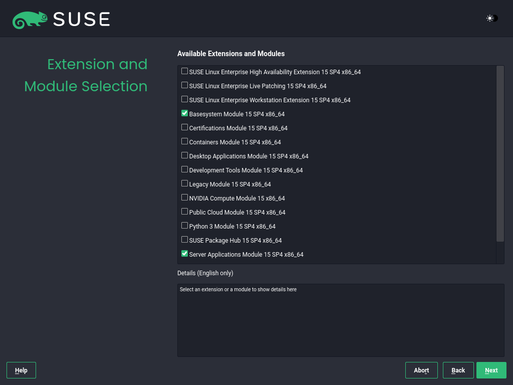 - 9 Registering SUSE Linux Enterprise and managing modules/extensions