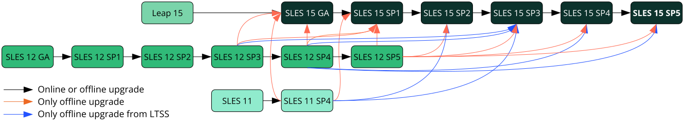 Upgrading from SLES 12 SP5 is only supported via an offline upgrade. Refer to Chapter 4, Upgrading offline for details.