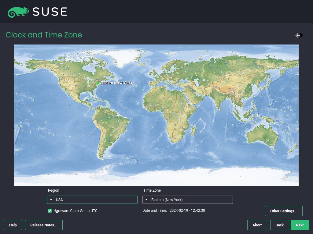 Use the following procedures to install the product on all supported hardware platforms. They assume you have successfully booted into the installation system. For more detailed installation instructions and deployment strategies, refer to Book “Deployment Guide”. For preparations required to boot into the installation system, refer to Book “Deployment Guide”, Chapter 2 “Installation on AMD64 and Intel 64”.