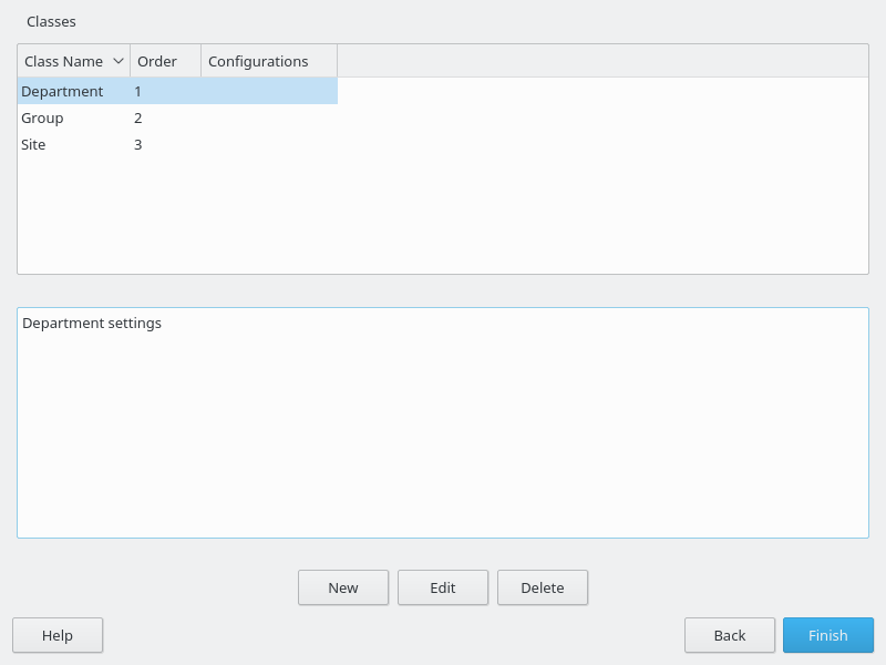 Classes represent configurations for groups of target systems. Classes can be assigned to systems.