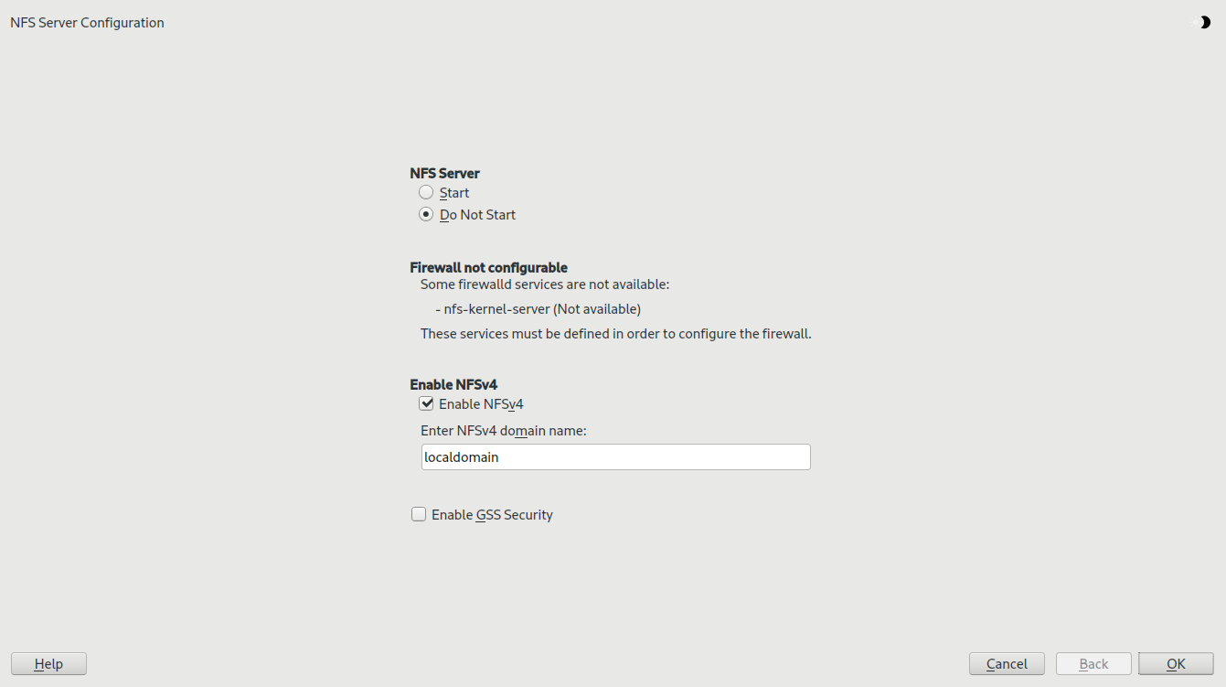 Check whether you want to . If you deactivate NFSv4, YaST only supports NFSv3. For information about enabling NFSv2, refer to Note: NFSv2.