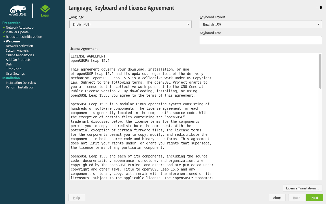 Read the License Agreement. It is presented in the language you have chosen. Other are available. Proceed with .
