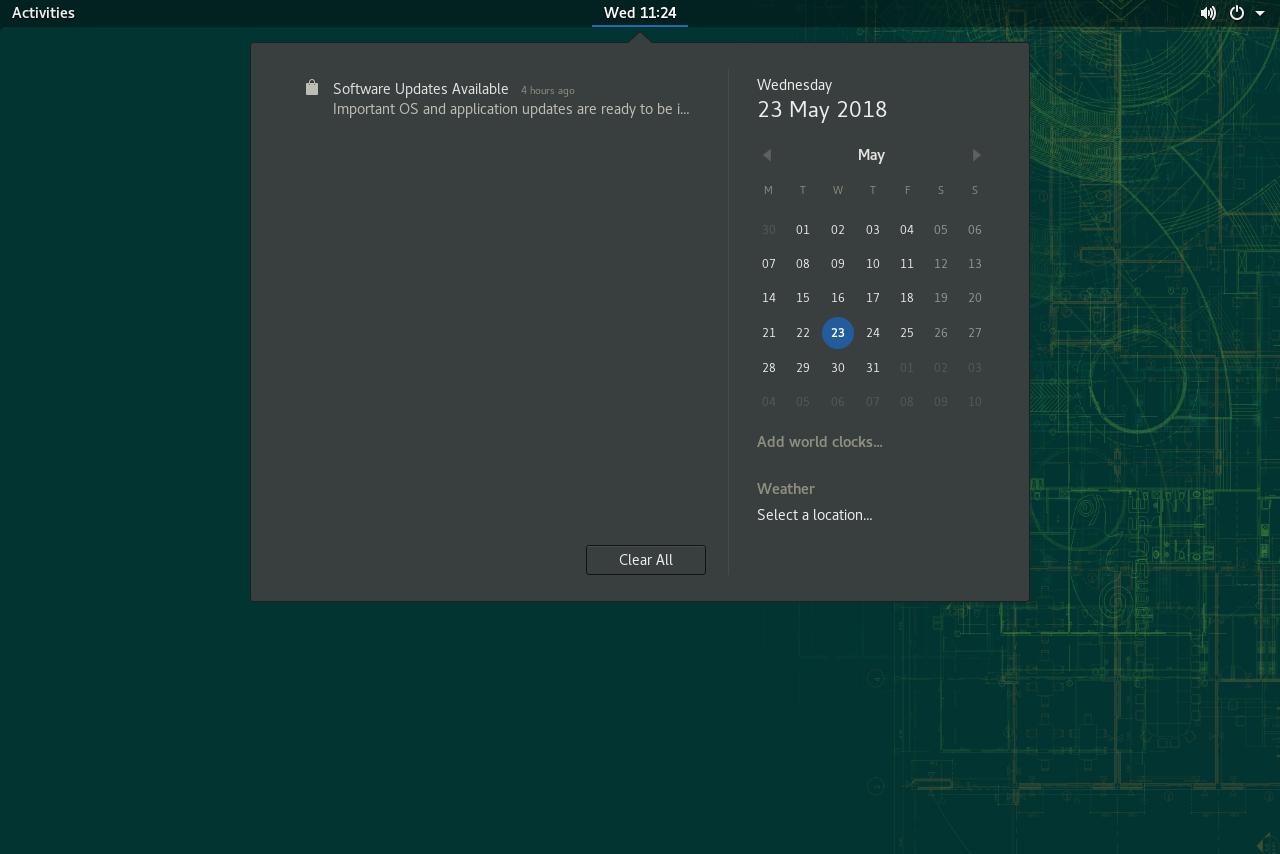 Whenever new patches or package updates are available, GNOME shows a notification in the notification area or on the lock screen.