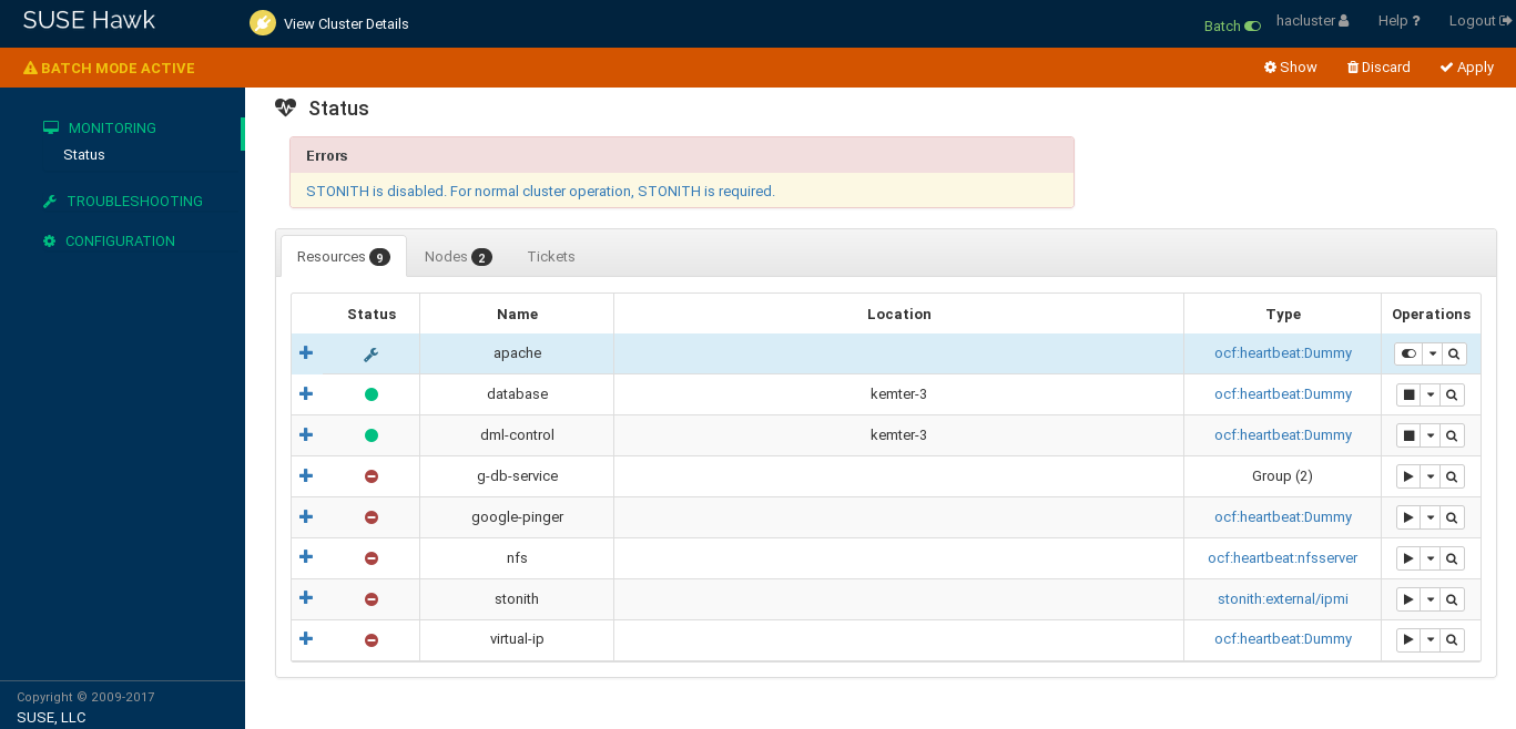 This guide is intended for administrators who need to set up, configure, and maintain clusters with SUSE® Linux Enterprise High Availability. For quick and efficient configuration and administration, the product includes both a graphical user interface and a command line interface (CLI). For performing key tasks, both approaches are covered in this guide. Thus, you can choose the appropriate tool that matches your needs.