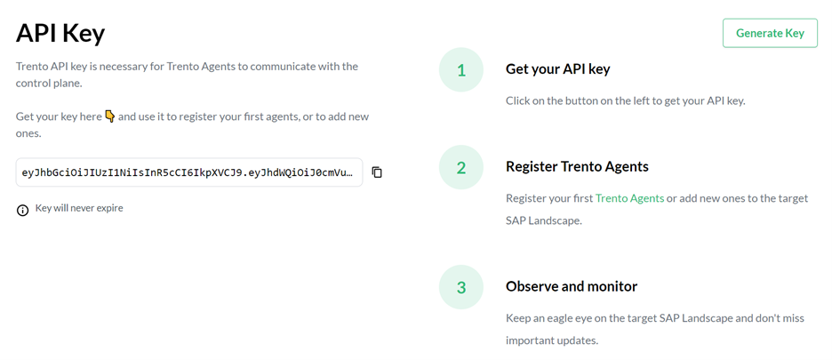 Before you can install a Trento Agent, you must obtain the API key of your Trento Server. Proceed as follows: