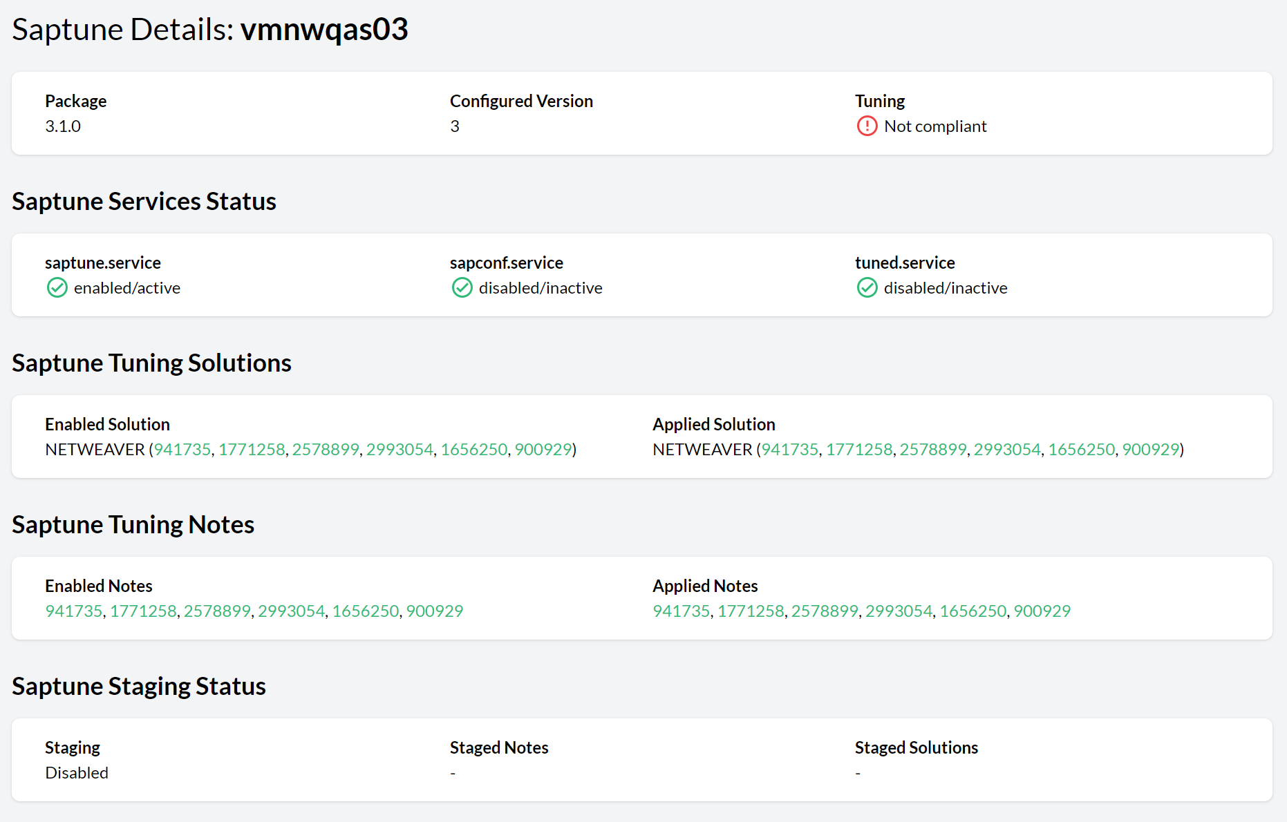 Saptune configuration checks.