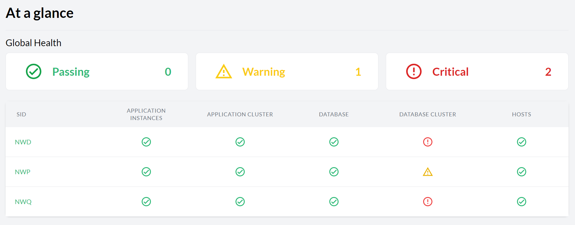 A dynamic dashboard that allows you to determine, at a glance, the overall health status of your SAP environment.