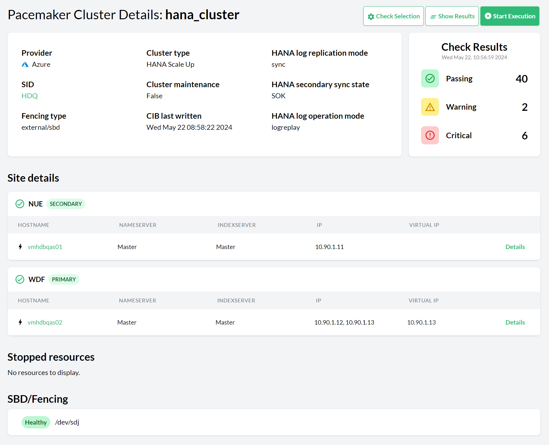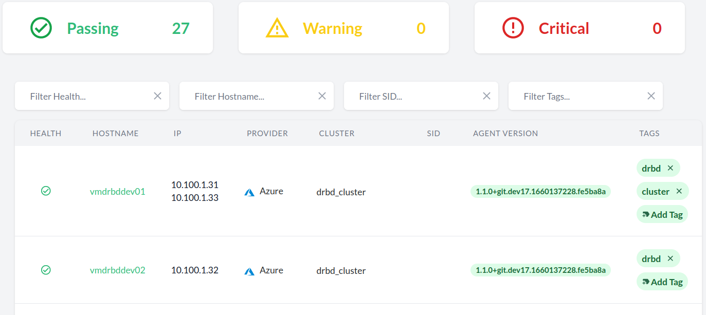 A brand-new safer, faster, ligher SSH-less configuration checks engine (wanda) which not only opens the door to configuration checks for other HA scenarios (ASCS/ER, HANA scale-up cost optimized, SAP HANA scale-out) and other targes in the environment (hosts, SAP HANA databases, SAP NetWeaver instances), but also will allow customization of existing checks and addition of custom checks.