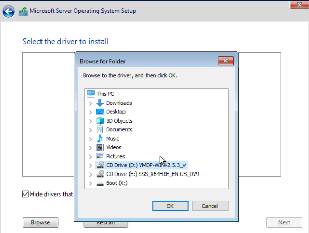 Browse to the directory that contains the SLE-VMDP driver: