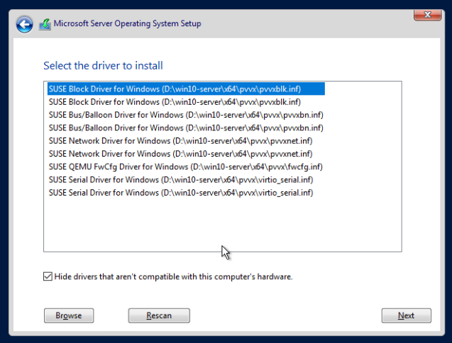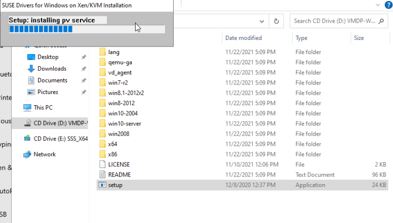 The program will install the SUSE Drivers for Windows Server 2022: